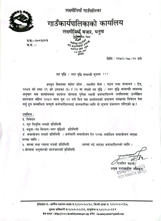तह वृद्धि / स्तर वृद्धि सम्बन्धी सूचना