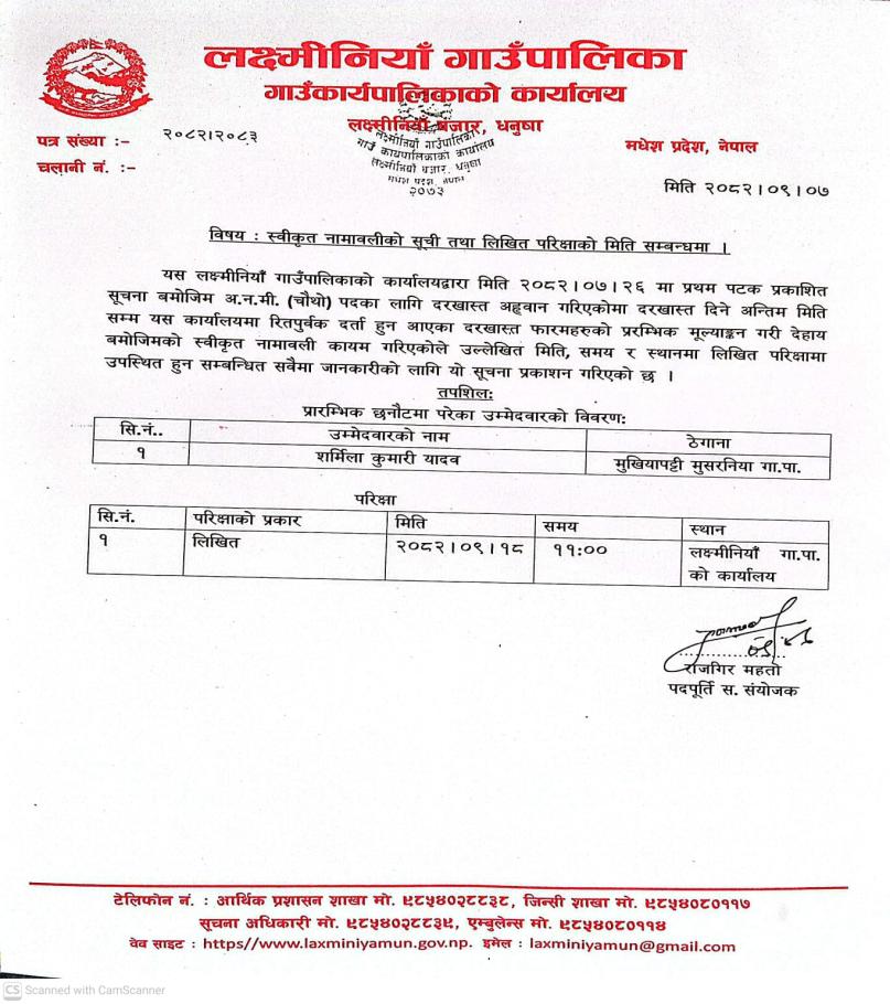 स्वीकृत नामावलीको सूची तथा लिखित परीक्षाको मिति सम्बन्धमा